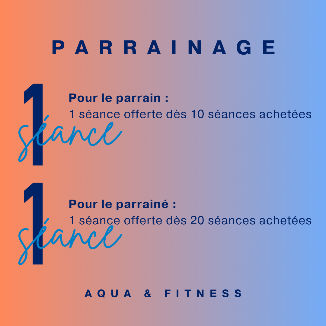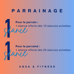 1 séances ou 1 semaines offerte dès 10 séances achetées par votre filleul.